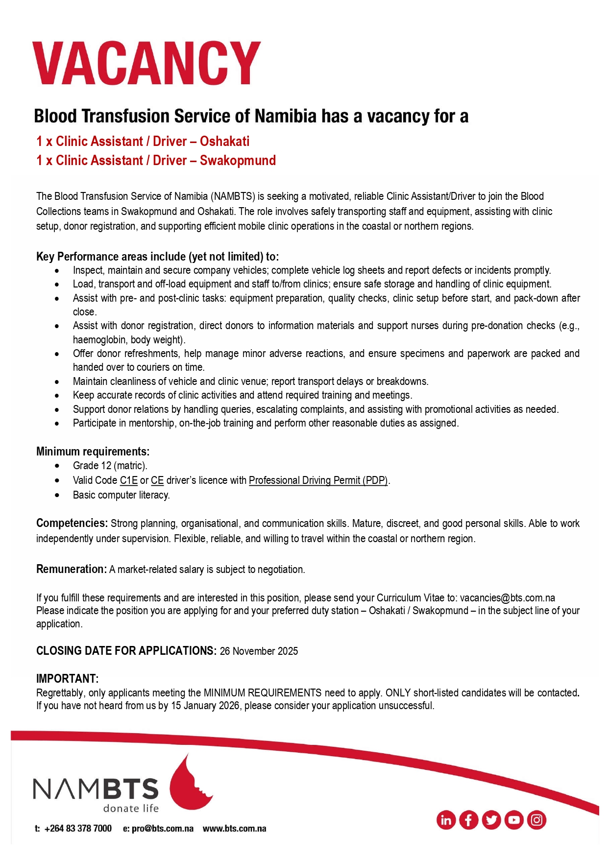 Vacancy - Clinic Assistant/Driver x 2